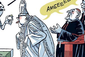 Al invitado lo han llevado a un restaurante de esos modernos -con todo su séquito por supuesto- y tanto les ha gustado que han decidido modernizar la iglesia. Ya era hora, aunque desde hace tiempo han podido suprimir los confesionarios y hacerlo vía on-line; esta costosa visita hubiera sido reemplazada por una videoconferencia; los bautizos, bodas y comuniones a través de su propia red social en la que pueden participar todos sus amiguetes y sobre todo dejar libres las calles y las plazas que siempre han sido de los librepensadores y no de las mentes alienadas y retrógradas, ya que éstas últimas están más seguras en sus palacios y templos de reunión.