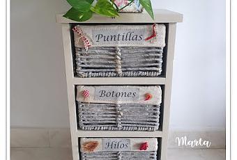 Fue un mueble que me regalaron, estaba sin cestas y en un principio lo único que le hice fue ponerle unas cestas que tuneé. Lo podéisa ver en la última foto.
