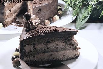 Se monta la tarta por capas de bizcocho con relleno de chantillí trufado.