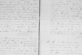 En la Ciudad de Monclova, a las doce del dia nueve de Fbro de mil ochocientos ochenta, ante mi Juan P. Farias juez del estado civil se presentó el C. Juan Torres manifestando: que ayer a las nueve de las mañana murió de mal de ojos la niña Hipólita Castillo de diez y ocho meses de edad, hija legítima del C. Bernavé Castillo y de Agustina Martinez, nativos ambos de Matehuala. Presento por testigos a los C.C. Lázaro Padilla y el esponente, mayores de edad, casado el primero de esta Ciudad y el segundo de Matehuala: quienes bajo la promesa de decir verdad, manifestaron: ser cierto lo que la presente espresa firmando conmigo el que supo.