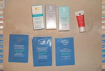 Y aquí, varias muestras de la marca Thalgo,en las que destaco:- Fluido hidratante matificante.- Mascarilla absorbente desincrustante.- Y el sérum regulador intenso.