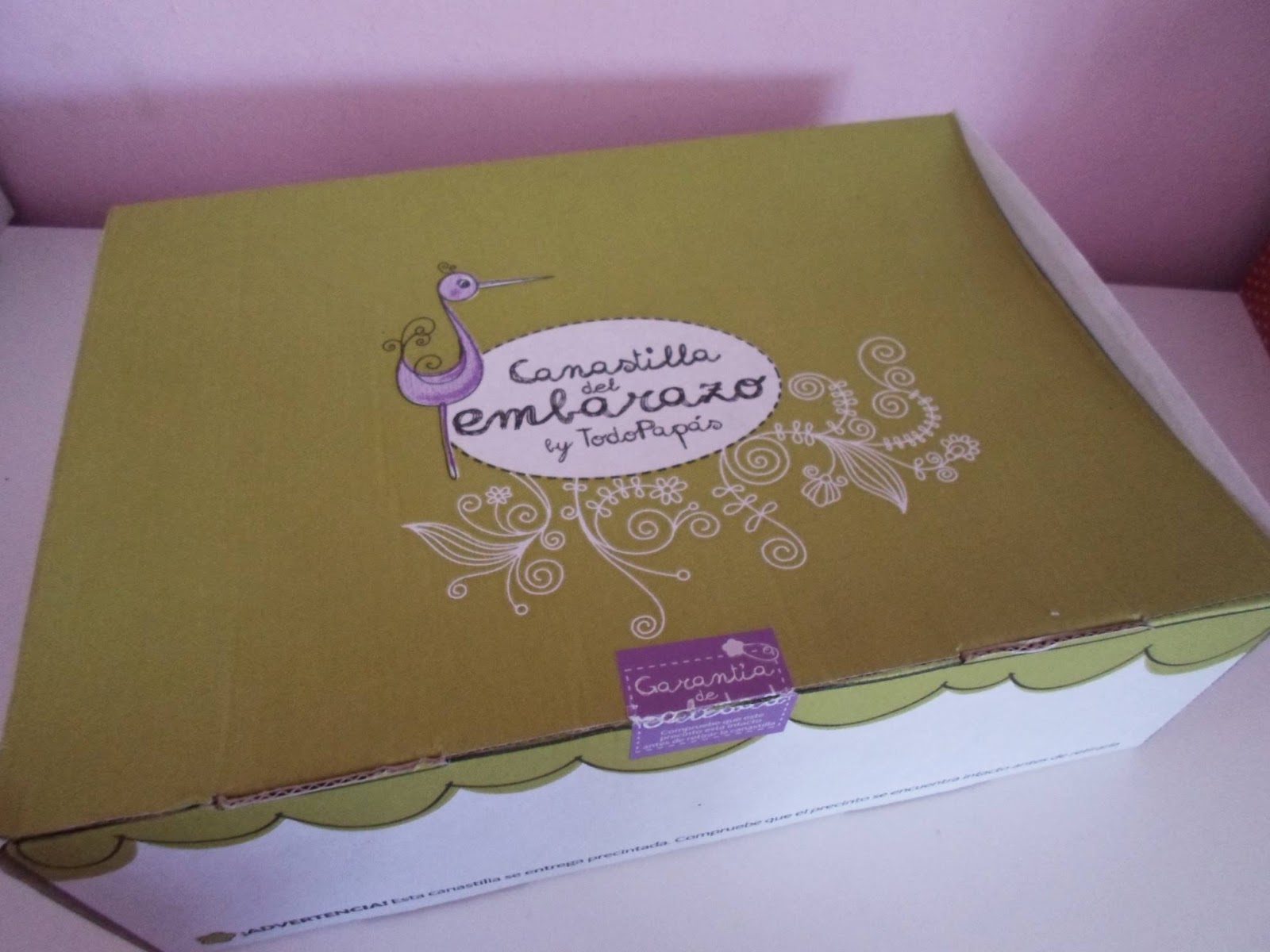 La canastilla del embarazo de TodoPapás, en ella vienen varias cosas para el bebé, una revista, cupón descuento...