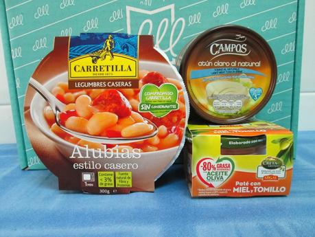 Aquí os enseño varios productos que también venían en la caja. El primero son unas alubias al estilo casero, de la marca "Carretilla". Yo al estar casi siempre sola en casa, me viene muy bien, jejeje.