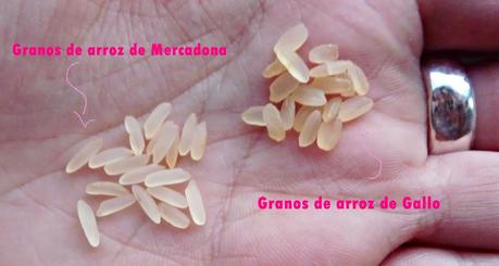 Para ver la forma y tamaño del grano, lo podemos comparar con un arroz que muchas tenemos en casa y es el de Mercadona: