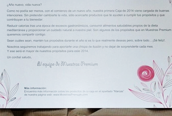 La caja del mes de enero se titula Buenos Propósitos y contiene una serie de productos, la mayoría de ellos, ideales para cuidar nuestra alimentación y darnos un empujoncito a las que queremos perder algún kilo o simplemente consumir productos bajos en calorías. Ya os he explicado en ocasiones anteriores que muestras Premium combina productos alimentarios con productos de cosmética. Entre los alimentarios que componen esta caja tenemos: