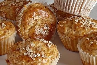 - Rellenamos con esta mezcla los dos tercios de unos moldes del tipo de que dispongamos (de papel, de aluminio, de silicona...) y espolvoreamos por encima con los copos de avena.