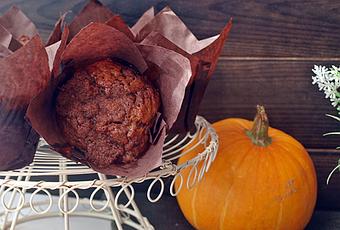 PREPARACIÓN:Para preparar el muffins tamizamos en un bol la harina junto con el bicarbonato, canela, especias y sal. Reservamos.A parte batimos los huevos junto con los azúcares hasta doblar tamaño, vertemos el aceite en forma de hilillo sin dejar de batir.Añadimos el puré de calabaza y mezclamos bien. Ahora quedan los ingredientes secos que incorporamos alternando con la leche.