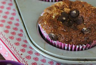 Para mi, que no me gustan los postres extremadamente dulces tienen el toque perfecto pero también podéis probar a añadir unos chips de chocolate a la masa, una vez hayáis triturado todos los ingredientes, además de espolvorear los chips por encima antes de hornear.