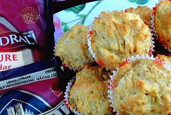 - En un bol, mezclar 225 grs. de harina, 1 sobre de levadura, 1 cdta. de pimentón dulce y ½ cdta. de sal. Añadir el beicon escurrido y 75 grs. de queso Cheddar rallado "Cathedral City".
