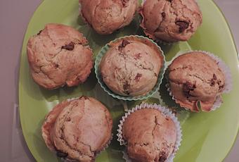 Rellenar los moldes de papel rizado para madalenas con el compuesto preparado hasta 3/4 partes de su altura. Introducir los muffins en el horno precalentado a 200ºC y cocerlos durante 20-25 minutos. Retirarlos dejar enfriar y servir.