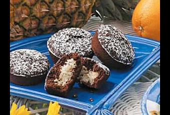 En otro tazón, bata el queso ricotta, el azúcar y clara de huevo hasta que quede suave. Añada el coco y extracto. Coloque 1 cucharada de la mezcla en el centro de cada molde.