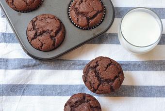 Ingredientes para doce muffins.- 2 huevos.- 100 gramos de mantequilla sin lactosa a temperatura ambiente.- 125 ml de leche sin lactosa (o bebida vegetal).- 150 gramos de azúcar.- 150 gramos de harina de arroz.- 75 gramos de cacao desgrasado.- 2 cucharaditas de levadura sin gluten.- Chips de chocolate negro al gusto.
