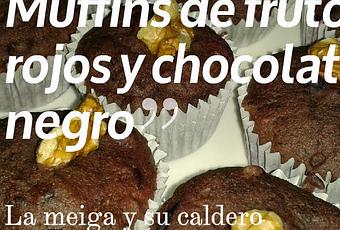 Pica el chocolate con un cuchillo o rállalo con un rallador grueso y resérvalo.En un vaso de batidora pon los frutos rojos, pero guarda un puñado de grosellas y arándanos. Estas frutas enteras se verán en el muffin y le darán sabor, color y textura.
