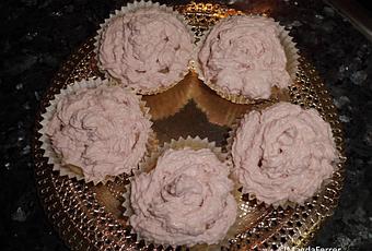 Poner un molde de papel en cada una de las cavidades de un molde múltiple para magdalenas. Distribuir la masa llenando los moldes de papel hasta la mitad. Poner la bandeja del horno a una altura media y cocer los muffins a 160 grados, con el ventilador durante unos 20 minutos o hasta que al pinchar con un palillo, éste salga limpio. Dejar enfriar.