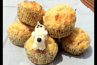 Mezclar el queso cottage con los huevos, la harina, la levadura y la sal. Añadir el jamón, el cheddar y la cebolla. Poner en los moldes engrasados y hornear en el horno precalentado a 200 º 25-30 minutos.