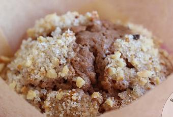 Ponemos una pequeña cantidad en cada una de las 12 capsulas para muffin, luego colocamos el trocito de chocolate con leche o unas pocas pepitas de chocolate, cubrimos con más masa, repartiéndola de forma uniforme entre los 12. Trituramos las avellanas con el azúcar que teníamos reservado para cubrir, lo repartimos por encima de los muffins y horneamos unos 30-35 minutos hasta que al pinchar salga seco.
