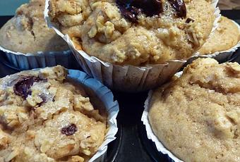 4. Hornear los muffins durante 25 0 30 minutos, o hasta que al insertarles un palillo en el centro salga limpio. Dejarlos enfriar 5 minutos antes de servirlos calietes o servirlos más tarde a temperatura ambiente.