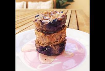 - Aplastamos los plátanos con un tenedor hasta hacer puré, agregamos una cucharada de crema de cacahuete y mezclamos.