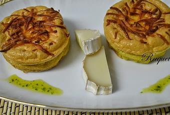Llenamos la mitad de los moldes y añadimos una rodaja gruesa de queso de cabra y rellenamos hasta casi completar el molde.