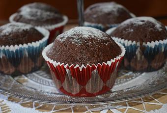 Espolvoreamos con azúcar por encima de las magdalenas.