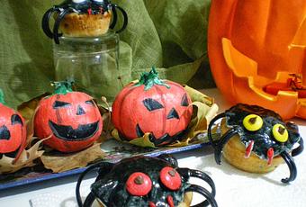 Me encanta la celebración del día de Halloween aún siendo una fiesta originaria de costumbres celtas y llevada a lo más alto por los estadounidenses, creo que empaparse y aceptar lo bueno de otros lares siempre es positivo, sobretodo en lo que a fiestas se refiere.Me encanta a pesar de no haberla vivido en mi infancia, pero me gusta sobre todo por ver la cara de todos los niños y la afinidad que tienen con el miedo en esta noche tan particular en la que toca disfrazarse y ver una buena película de miedo.Comienzo este Pre-Halloween preparando unas arañas con base de muffins de arándanos.Es mi primera vez.La primera vez que me pongo a decorar con fondant.Reconozco que me ha resultado un poco difícil trabajarlo y sobre todo teñirlo, pero es estupendo porque recuerda a la plastilina pero bueno a fuerza de práctica se irá mejorando.Aún así estoy contento con el resultado.