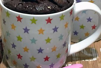 - Darle una vuelta de 180ª a la taza a mitad del horneado para que el bizcocho suba por igual. Es decir, si ponemos la taza con el asa a la derecha después del primer tiempo de horneado, ponemos el asa al lado contrario.