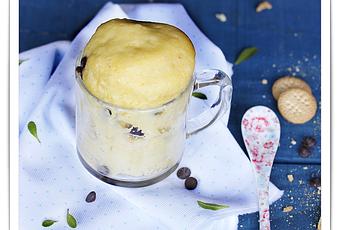 Ingredientes (para una taza de 230ml):- 1 y 3/4 cucharadas de mantequilla (25 grms).- 1 huevo.- 3 cucharadas de azúcar (30 grms).- 4 cucharadas de harina (40 grms).- 1/4 cucharadita de levadura química.- 1/4 cucharadita de extracto de vainilla.- Un puñado de gotas de chocolate.