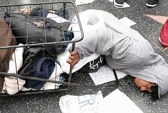 La policía estaba en la búsqueda de una mujer sin techo (homeless) votante de Trump que fue agredida en el Hollywood Boulevard. El video ha sido muy visto en YouTube y en este se puede ver como la mujer que portaba unos carteles pro Trump como muestra de su apoyo es víctima de violencia física por parte de algunos detractores del presidente.