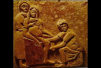 Relieve en piedra del parto de Isola Dell 'Sacra, Ostia, siglo I EC