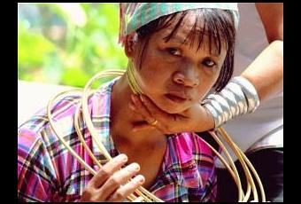 Las mujeres Padaung o Kayan también llamadas mujeres de “cuello jirafa” son una minoría étnica tibeto – birmanas. Debido al conflicto con el régimen militar de Birmania la mayoría de sus miembros huyeron a Tailandia.