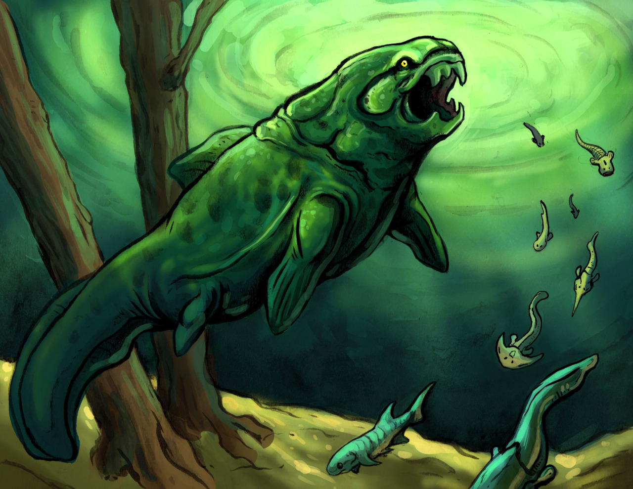 Por otro lado, Leigh ha reconstruido ambientes paleozoicos con algunos de sus principales protagonistas como los cefalópodos ordovícicos, los euriptéridos silúricos o los placodermos devónicos. A continuación dejamos una selección de su trabajo, en el que también hay cabida para ejemplares mesozoicos (plesiosaurios) o cenozoicos (entelodontos) entre otros: