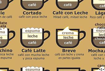 CAFÉS: Cada cual lo pide a su manera (¡faltaría más!) y nadie se va a preocupar por enseñarte cómo se sirve un café según su nombre. Así que si eres de esos del cafecito con leche de toda la vida y no sabes lo que diferencia a un “cortado” de un “americano” de un “cappuchino”, aquí tienes esta infografía.