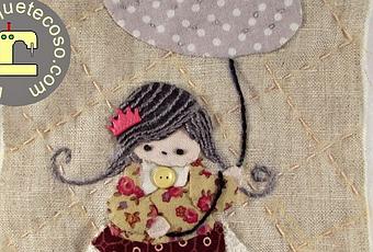 Lo que más ilusión me hacía era ponerle coloretes se me ha olvidado, ahora mismo lo hago.Es un proyecto para meter los palitos a apliquilt, solo pensaba decorar una cara, ahora como no estoy convencida, quizá ésta la use para la posterior e intentaré hacer otra más decente para el frontal.Y sigo coso que te coso...