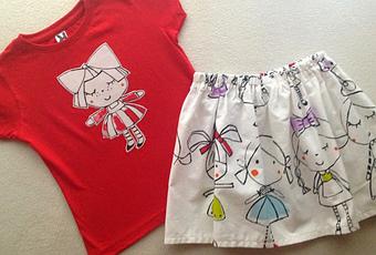 Hace ya tiempo que compré esta telita de muñeca tan cuqui. Y tenía ahí el trocito ya cortado, la aplicación preparada, la camiseta comprada... pero nada, que no le metía mano. Hasta este pasado viernes.