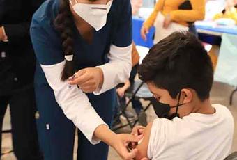 Este martes se aplicaron vacunas en el patio de la Unidad Administrativa Municipal, a niñas y niños de 5 a 11 años en segunda dosis; gran voluntad del Gobierno Municipal de proteger a los menores ante la pandemia de Covid 19 que ha azolado al mundo.