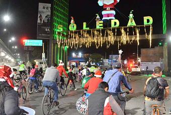 El Municipio de Soledad de Graciano Sánchez llevó a cabo la última Rodada Nocturna del año, con una temática inspirada en la temporada navideña. La jornada, realizada la noche del martes, reunió a decenas de personas de distintas edades, quienes recorrieron calles iluminadas y disfrutaron de un ambiente festivo, reafirmando el compromiso de las autoridades municipales con la promoción de la actividad física y la convivencia social.