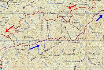 ... antes de atravesar El Puente las Gaḷḷegas (o Entrambosríos). A partir de este punto el camino se convierte en pista siendo ya todo el trayecto en llano hasta Tablizas