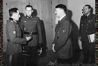 El General al frente de la División Azul, Agustín Muñoz Grandes, ha mantenido hoy una entrevista con el Führer en la Guarida del Lobo, Cuartel General del Führer en Rastenburg, Prusia Oriental.
