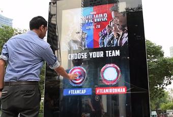 Hace unos días se estrenó la película "Captain America: Civil War", en la que dos bandos de superhéroes se enfrentan entre ellos, el equipo del Capitán América y el de Iron Man. Evidentemente, tener dos grupos de personajes famosos hace que la gente se posicione hacia un lado o hacia otro, por lo que decidieron explotar esto para promocionar el film en Singapur.