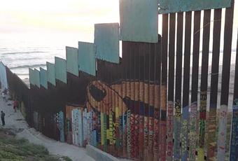 La imagen de una mano extendida que invita a ser estrechada entre mariposas que revolotean alrededor convive con la de un cerro de cráneos coronado por una cruz azul acero. Esta es la gráfica de este mural de México en la valla que los divide con Estados Unidos. Alegría y dolor se intercalan como en la vida misma. Este mural, sin embargo, es singular pues medirá dos kilómetros lineales, aspirante al récord Guinness, y viene siendo pintado por los propios habitantes de algunas de las ciudades que se erigen a lo largo de la frontera noroccidental de México con Estados Unidos, partiendo de la mítica Tijuana, fronteriza con San Diego.