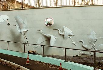 El artista italiano Eron completó recientemente un par de murales impresionantes que representan una gaviota y una garza tomando vuelo bajo un viaducto en Riccione, Italia. Cada mural pintado con aerosol muestra una secuencia de siluetas de las aves a la transición de blanco y negro en relieve a las figuras que aparecen casi completamente realistas. Eron es conocido por su enfoque delicadamente matizado con una lata de aerosol que también utiliza con gran éxito en una serie de obras de arte que representan figuras fantasmales que aparecen en el polvo por debajo de los orificios de ventilación. Se puede ver un montón más en su sitio web.