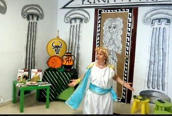 Se trataba de una de las 9 musas, Clío (musa de la historia), que había aparecido en nuestro cole. Estaba algo desorientada y nosotros intentamos situarla. Estamos en 2014 y ella venía de un lugar muy lejano, había viajado en el tiempo casi 3.000 años. Nos presentó a dos de sus hermanas que la habían acompañado: Erató (musa de la poesía amorosa) y Talia (musa de la comedia). Nos explicaron quien era su padre, ni más ni menos que el gran Zeus, que vivían en el Olimpo y que ayudaban a inspirar dentro de las diversas artes como la música, la danza, la literatura...También nos presentaron a dos de sus hermanos, Ulises (llamado Odiseo en la Odisea de Homero) y Hércules.