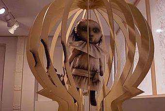 La muestra supone una recreación del mundo oscuro de Snowhite (que, por cierto, me ha recordado mucho a Tim Burton): una caja de madera de edición limitada con objetos personales de la protagonista; un cuaderno de bocetos; figuras interactivas colgadas del techo que podemos mover con hilos; figuras tridimensionales; cajas mágicas; o una casita creada con el más mínimo detalle.