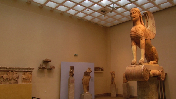 En el lugar hay un museo que tiene piezas excepcionales de las que muestran la evolución del arte en la civilización griega como la esfinge de Naxos, que representa una etapa inicial con la mezcla con otras culturas.