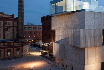 English version A stacked block chaining. The museum of architectural drawings hosting the Tchoban Foundation collection. For its construction, the Foundation purchased a small plot in the old complex Pfefferberg brewery in Berlin. The new museum building, designed by Sergei Tchoban and Sergei Kuznetsov, is located at the entrance to the complex adjacent to protected sites, and establishes a logical continuation of the development of the new cultural center of Prenzlauer Berg. The volume of the museum is formulated by stacking five blocks slightly offset from each other to clearly define the structure of the building. This collection of solid pieces culminates in a transparent block that overhangs above. The facades of the four blocks were made in concrete below. Fine textured finish is coated on all surfaces with embossed architectural drawings, resembling drawn sheets. Thus, the architects propose manifest activity that takes place inside, telling stories individual at various depths with different alignment angles to the wall. The volume of the first and third floor alternating compact surfaces with large planes of glass to establish evidence of access, located on the northwest side. Half of the 450 m2 area of the museum is used for exhibitions and the rest to other activities. Transposed the entrance hall, the ground floor is completed by the museum shop and the Wardrobe. The first and second floors contain exhibition rooms. The third floor formulated as a separate unit, it is used as a storage tank. The upper level coexist conference rooms and places for social activities with the workshop of restorers. A terrace can extend outside activities this unique museum.Escrito en: Arquitectura