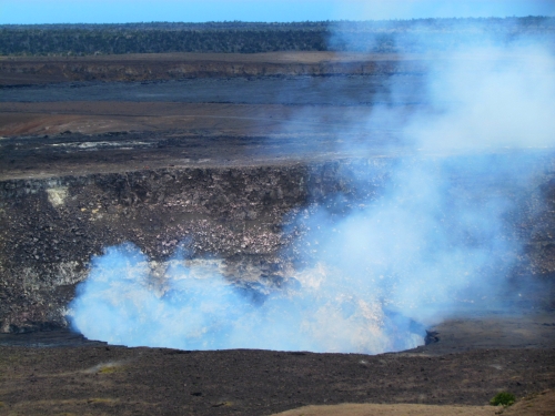 un mirador bastante cercano al cráter Halema´uma´u del volcán activo Kilauea o como llaman, la caldera del volcán.