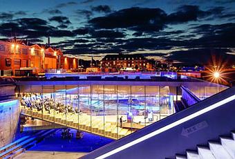 Incluso el auditorio funciona como un puente que conecta directamente el castillo de Kronborg con el puerto. El edificio contiene 7.600 metros cuadrados de galerías que albergan la colección permanente del museo, con cartografía, artes plásticas, maquetas e instrumentos de navegación. Además, el espacio se puede transformar de forma rápida y fácil en doce salas independientes, de diferentes formas y tamaños, que permiten organizar exposiciones y eventos especiales.