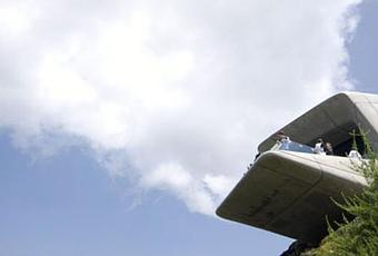 Los amplios ventanales permiten que la luz natural penetre profundamente en el museo, lo que atrae a los turistas desde el interés por el interior, hacia las ventanas panorámicas y la terraza de observación en voladizo sobre el valle muy por debajo de ella.