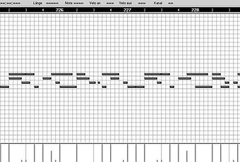 Curiosa esta pagina en donde se explican los métodos de notación musical y en particular los métodos modernos por ordenador. En las aplicaciones de música – secuenciadores – las notas están representadas por rectángulos; la altura representa la tonalidad y la longitud del rectángulo su duración (hay muchos mas parámetros, pero no voy complicar más la cosa), como se puede ver en esta imagen de un tema en el programa Cubase. Aunque en la imagen no se vea hay una linea vertical en movimiento que nos indica el tiempo actual de ejecución.