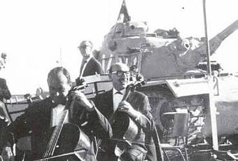 Las vidas de los músicos de ambos bandos fueron determinadas por la larga serie de las batallas, las notas alternaron con el plomo y la metralla. Un libro de la periodista Ana Arambarri recupera las fascinantes intervenciones de grandes músicos en el conflicto árabe-israelí: Un violonchelista de la Orquesta Filarmónica de Israel dirigida por Leonard Bernstein afina su instrumento en el desierto. De fondo, dos banderas y un tanque. Suenan las alarmas antiaéreas alertando del inminente ataque. Pero la música continúa para elevar la moral de las tropas pero también para ofrecer esperanza a todo un pueblo. Años después, la música logra algo más. En plena guerra del Líbano, a pocos kilómetros de la frontera, Zubin Metha mueve la batuta en un campo de tabaco, bajo una lona, para un público de judíos y árabes. El peligro es tal que, al término del concierto, el director pide a los espectadores que suban al escenario para esconder a los músicos. Allí, árabes y judíos se abrazan juntos. Son sólo dos escenas entre otras muchas recogidas por la periodista Ana Arambarri en 'Música contra los muros' (Galaxia Gutenberg), el fascinante libro sobre las esperanzas de reconciliación que abre la música en la guerra interminable de Oriente Medio. Por Daniel Arjona
